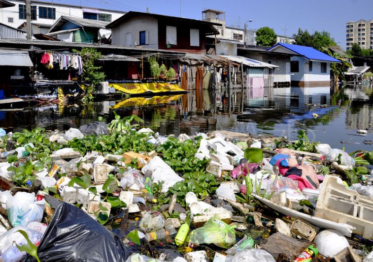 Waste plastic in Bangkok waterway